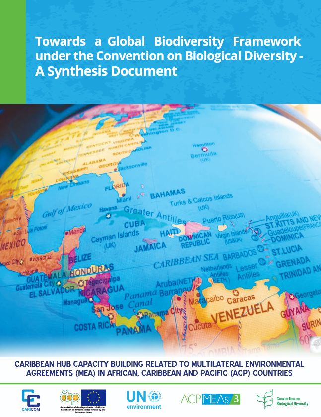 A synthesis document prepared for Caribbean CBD negotiators under the ACP MEAs 3 Caribbean Hub, summarising the negotiation context, draft goals and targets, key issues, and proposed text elements